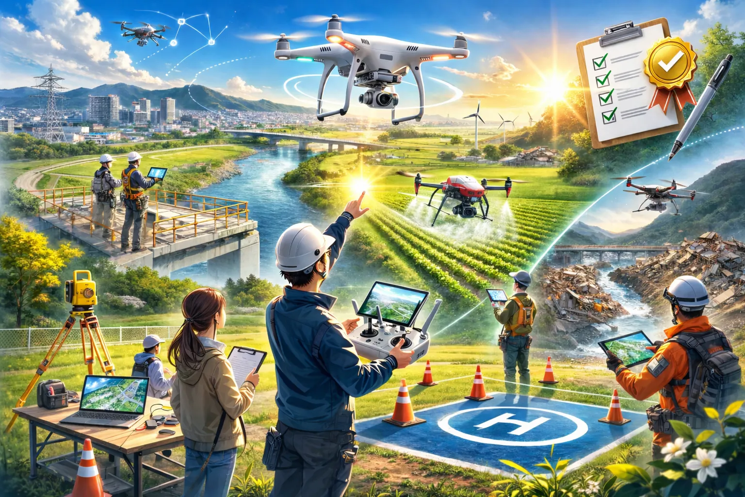 最近、ニュースやイベント映像を通して「あ、ドローンだ」と感じる光景が、ぐっと身近になったと思いませんか?今後ますます、ドローンはもう単なる趣味の道具ではなく、立派な「社会のインフラ」へと進化していく予感がしています。そこで、今回は、資格習得についてのお話です。「資格を取るなんて、まだ早いのでは?」と感じる方もいらっしゃるかもしれません。ですが、実は今こそが絶好のタイミングです。建設現場の点検や測量、農業での散布、さらには災害時の状況確認まで、ドローンが活躍するフィールドは驚くほどの勢いで広がっています。そんな中、今、現場から切実に求められているのは、単に「飛ばせる人」ではなく、ルールを正しく理解し、安全に運用できる「ライセンスを持ったプロ」の存在です。